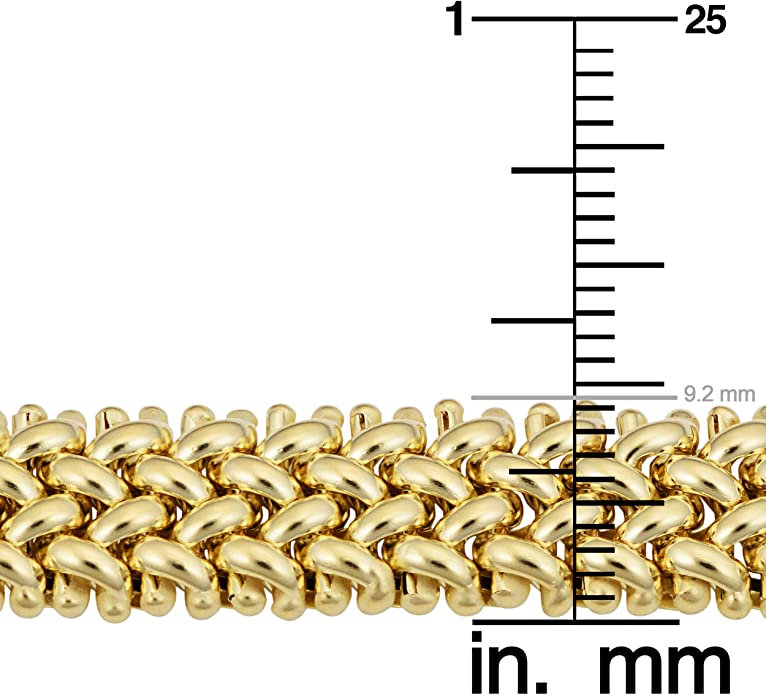 Brand name Kooljewelry Metal purity 18k Metal type gold Material metal Gem type na Width 9.2mm 7.5 inches in length Necklace/bracelet/anklet type basket weaving The total weight of metal is 13.65g. Model 18KB212-75