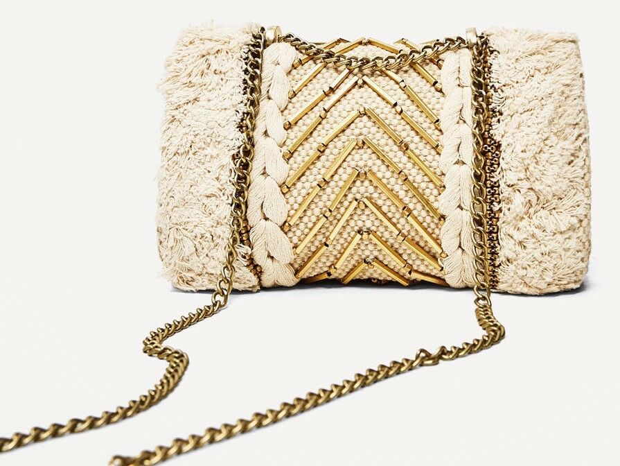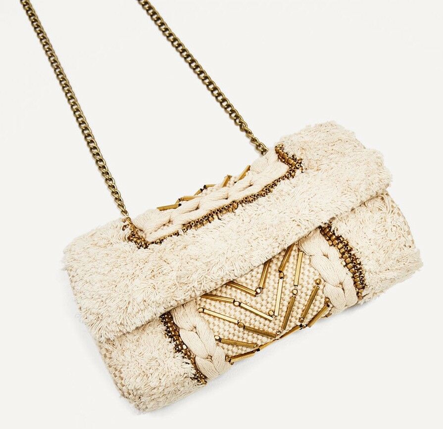 Zara Quilted ECRU Ivory Offwhite Tweed Flap Bag Silver Tone Pom Poms Cotton NEW
