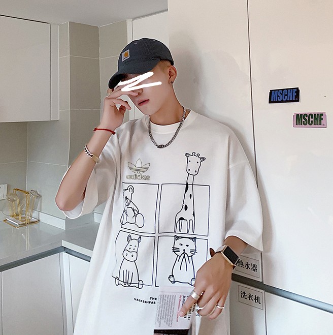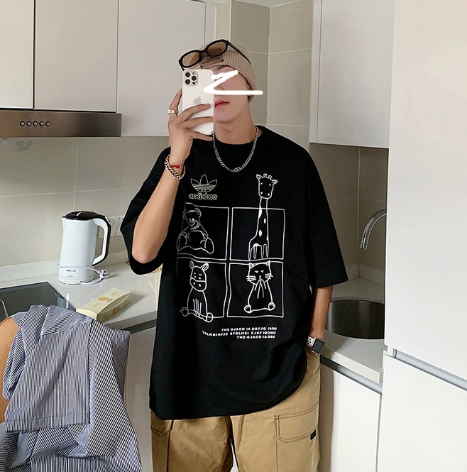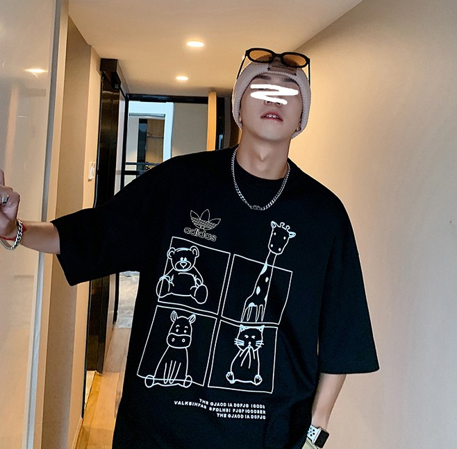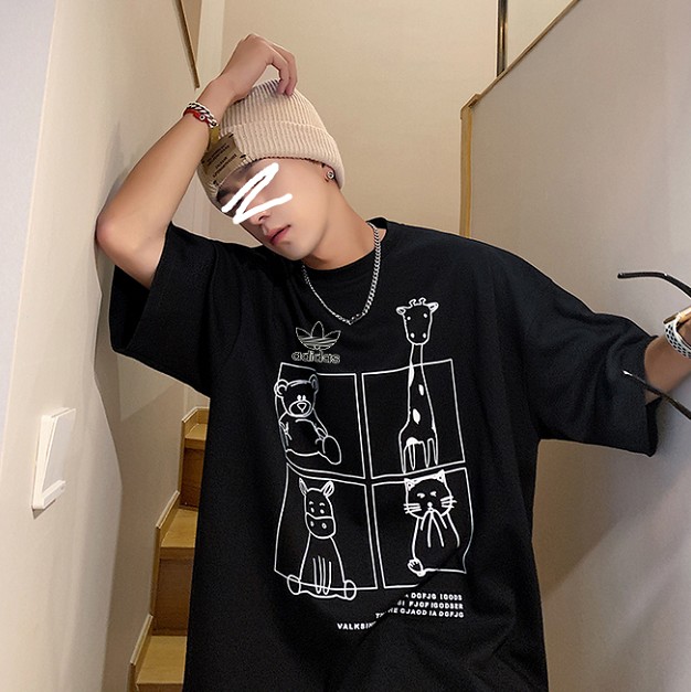 adidas adidas clover summer men and women couple cartoon printing casual round neck short sleeve t-shirt