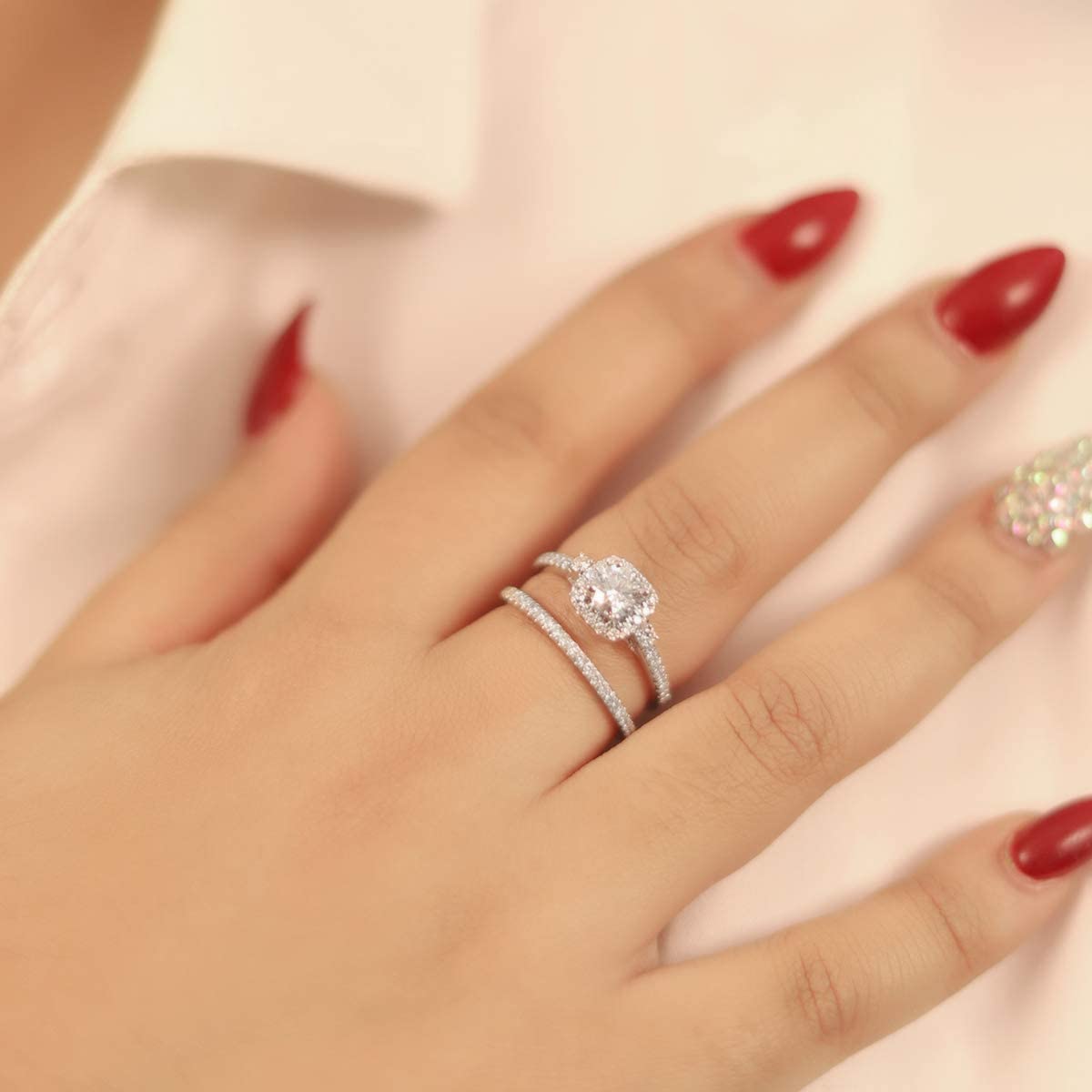 Holiday Season Deals lab planted diamond rings 10K white gold 1ct-1 1/6ct lab artificial diamonds 2 sets of bridal rings (1ct-1 1/6ctw, GH-i1-I2 ladies jewelry)