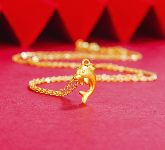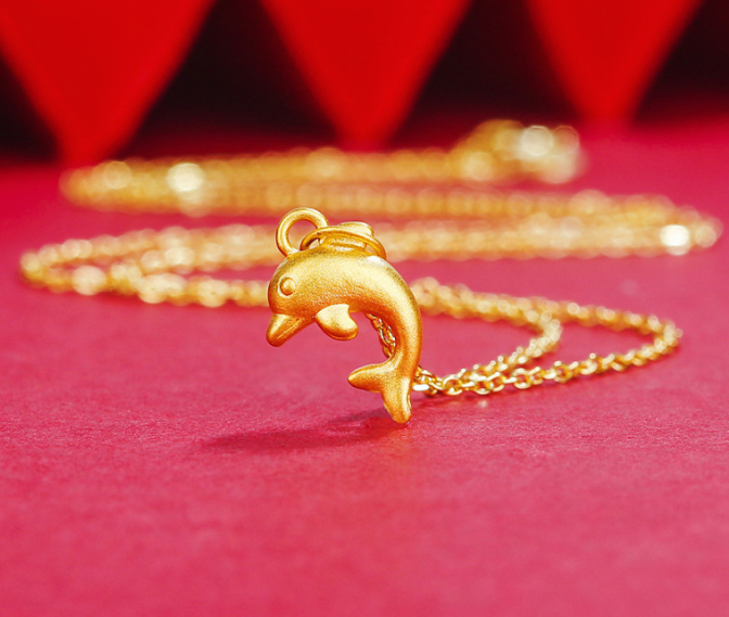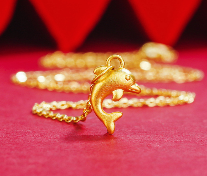 3d hard gold dolphin gold necklace pendant pure gold 999 gold pendant simple pendant geometric necklace