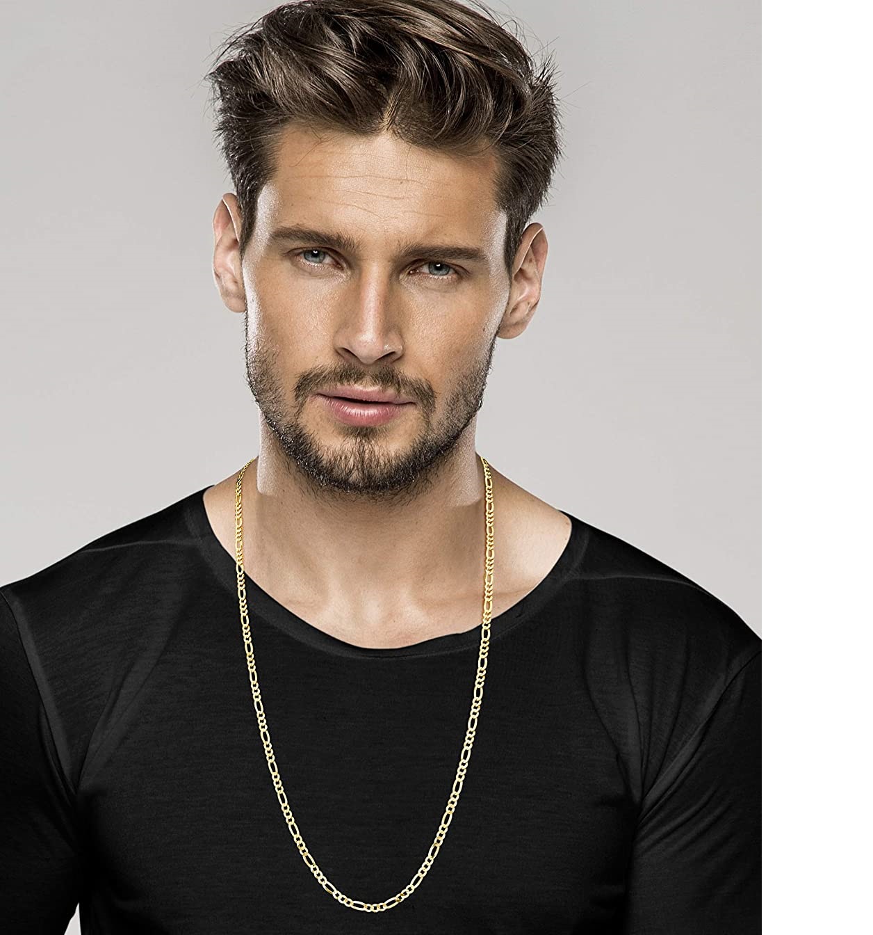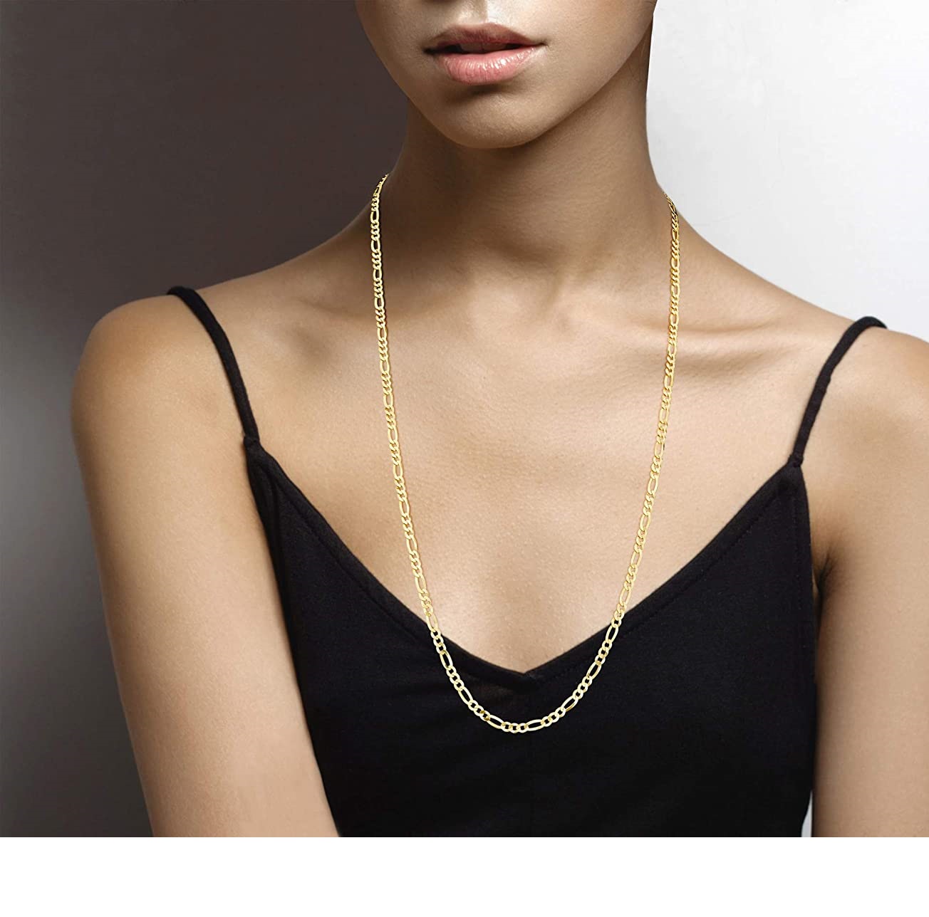 MiaBella pure 18K gold sterling silver Italy 5mm diamond cut Figaro chain necklace is suitable for ladies and men, 40.64cm, 45.72cm, 50.8cm, 55.88cm, 60.96cm, 66.04cm, 76.20cm.
