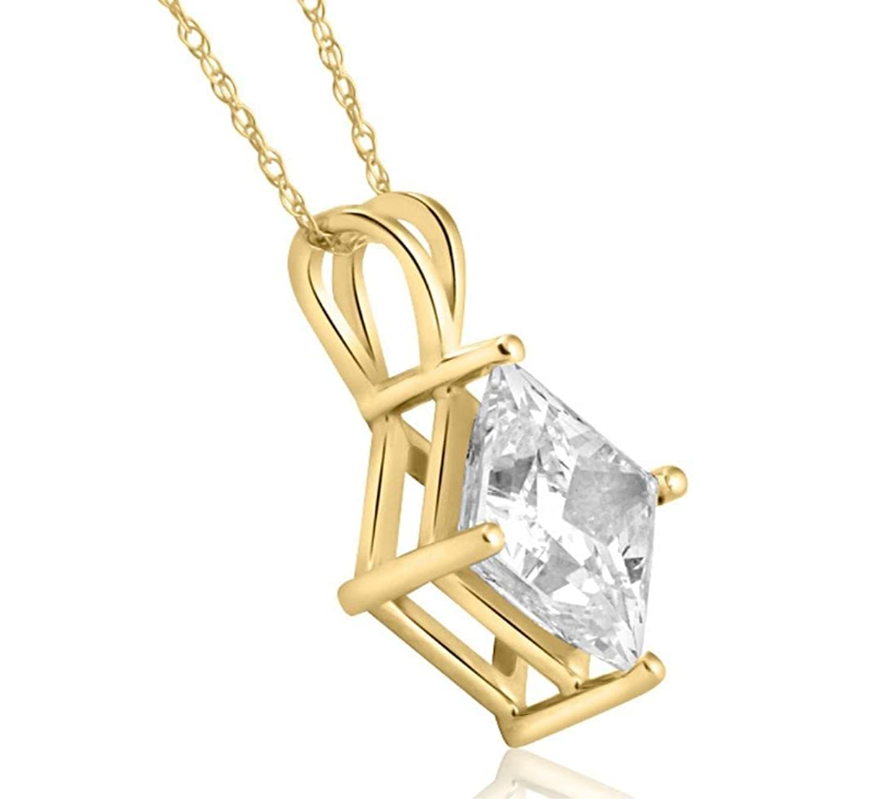 3.09Ct Certified Princess Cut Solitaire Diamond Pendant Yellow Gold Lab Grown