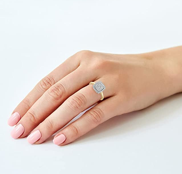 • Say Yes - Easily say yes to this perfect ring with our Amazon Exclusively Designed Bridal Collection. This striking engagement ring is a great choice for brides and grooms. Square halo cluster diamonds totaling 0.50 carats and paired with a polished flat ring. Brilliant Expressions offers this gorgeous product at an affordable price that will put you in the limelight!