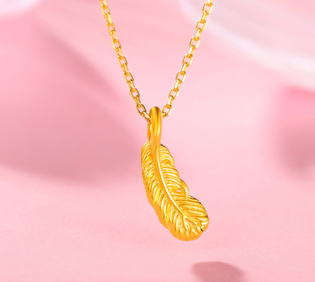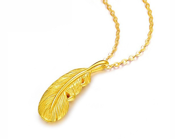 99 Gold Pendant Female Gold Feather Necklace 24k Gold Pendant for Girlfriend Birthday Gift Valentine's Day Gift