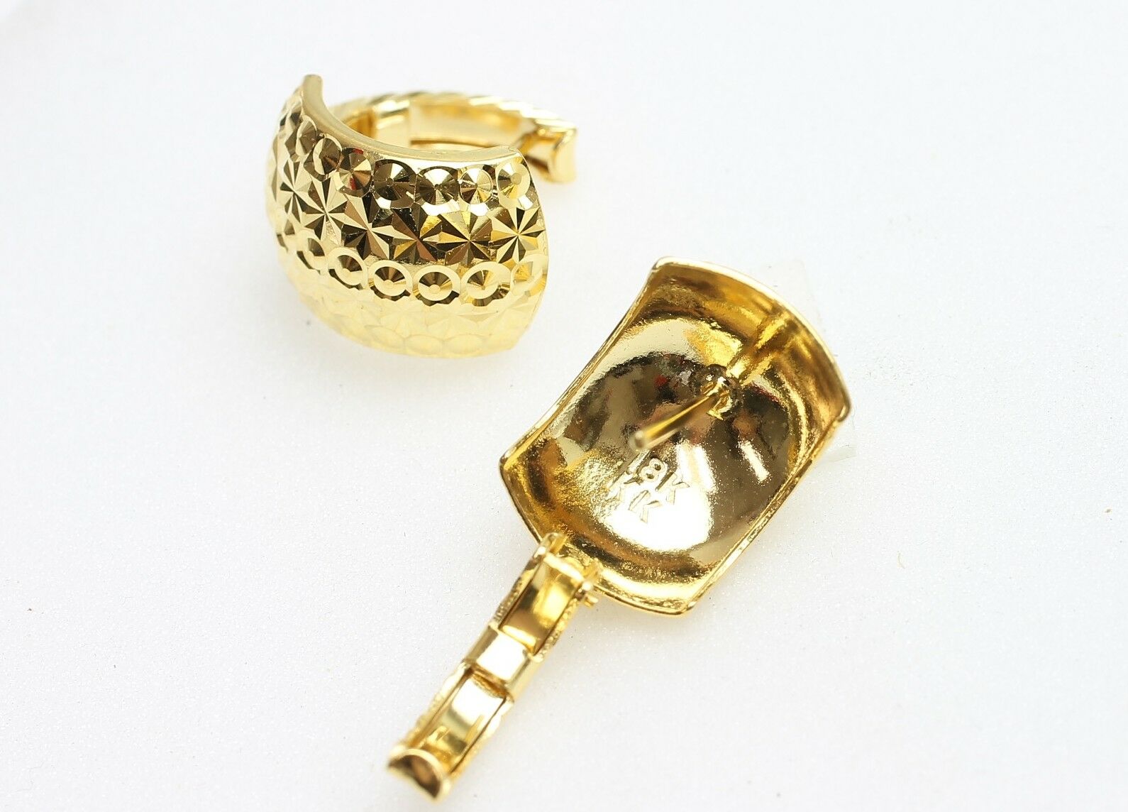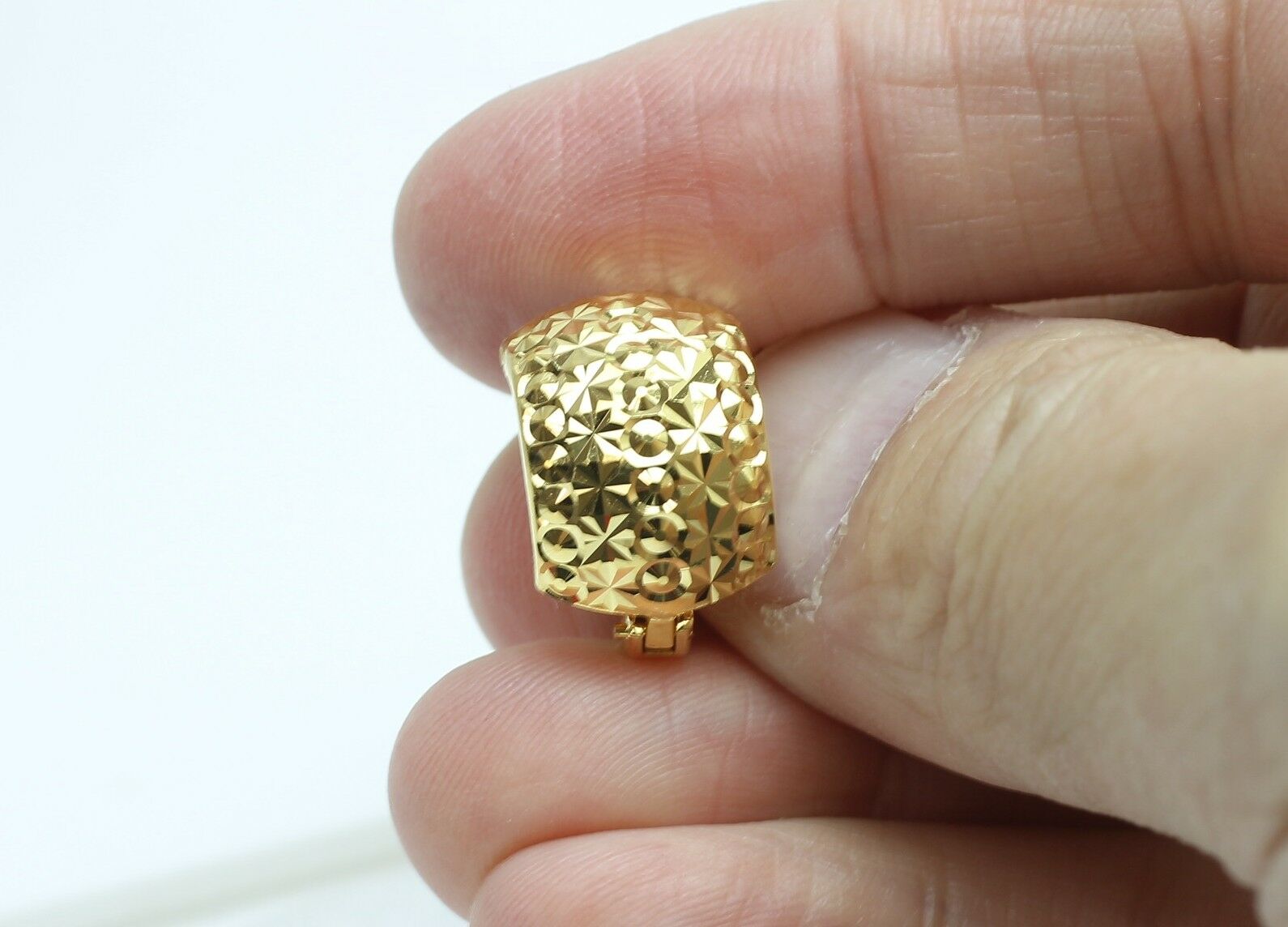 18k solid gold diamond cut hoop clip earring 4.8 gram #B8