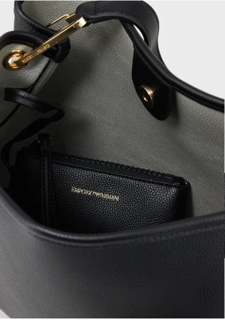 Emporio Armani has created just the bag for you. MyEA Bag can be personalised and customised in whichever way you prefer. Choose your style and embellish it with accessories that reflect who you are. This hobo bag has clean lines and a casual style with a deer-print finish, magnetic closure and screen-printed logo. The item is embellished with removable gold-tone carabiner clips and tags that match the bag and with embossed logo lettering. Coordinated inner zipped pochette. Dimensions: 31 x 30 x 15 cm.