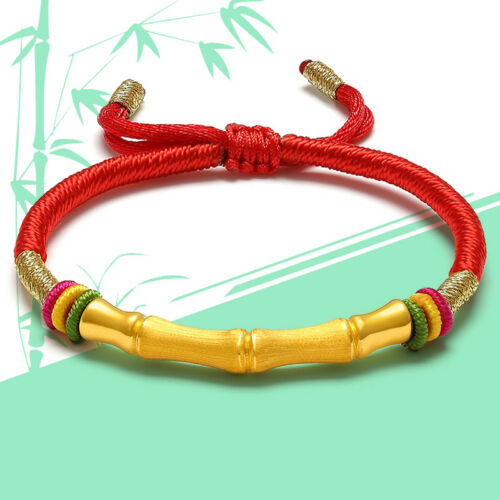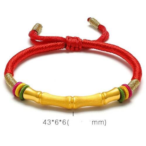 New Pure 24K Yellow Gold Bracelet Woman's 6*43mm Elegant Bamboo Lucky Adjustable