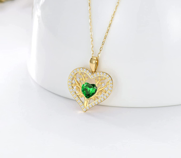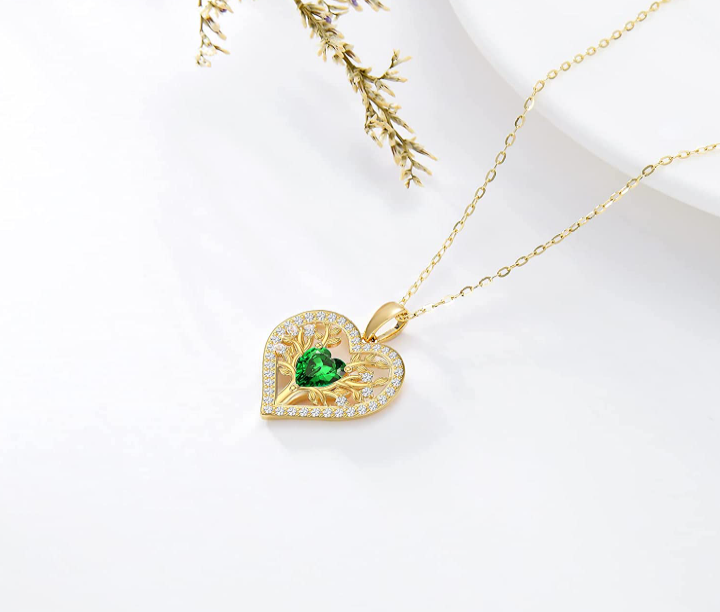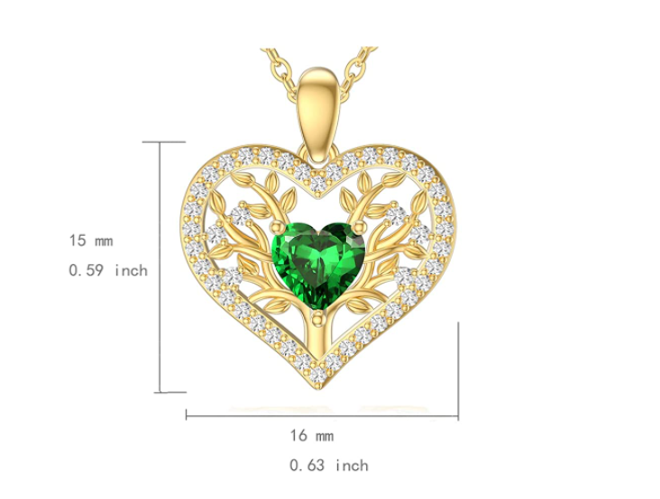 • DESIGN-tree of life necklace, means love and peace. It is not only the symbol of a warm and harmonious family, but also the protection of lovers; It also represents peace and the pursuit of life. This shape of pendant is a classic heart, simple and elegant; the main stone is a heart-shaped green cubic zirconia, which is dazzling and beautiful.