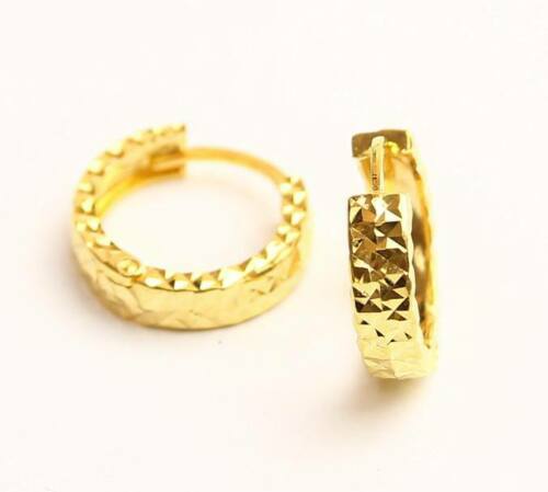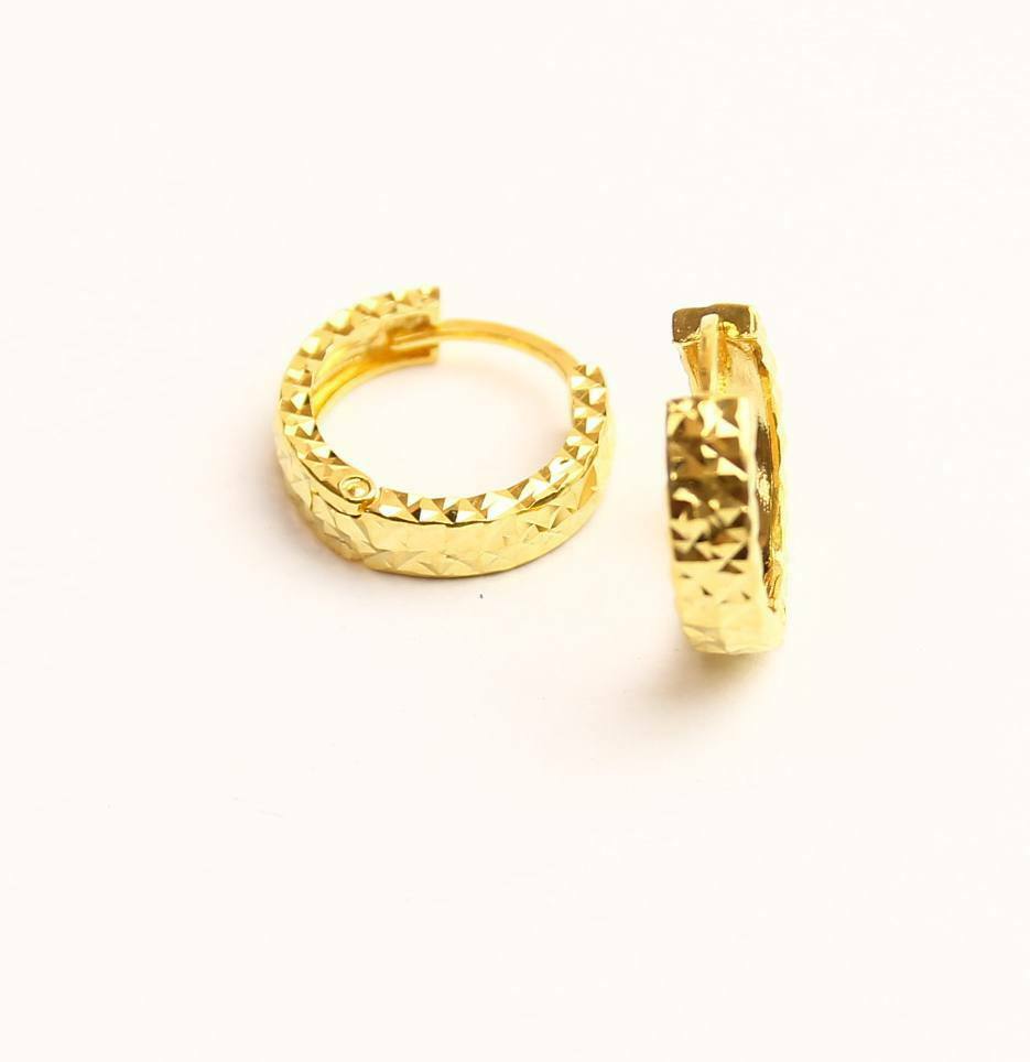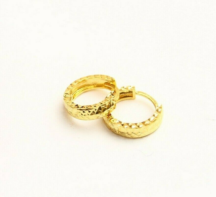18k gold diamond cut hoop huggies earring 1.8 gram #B7