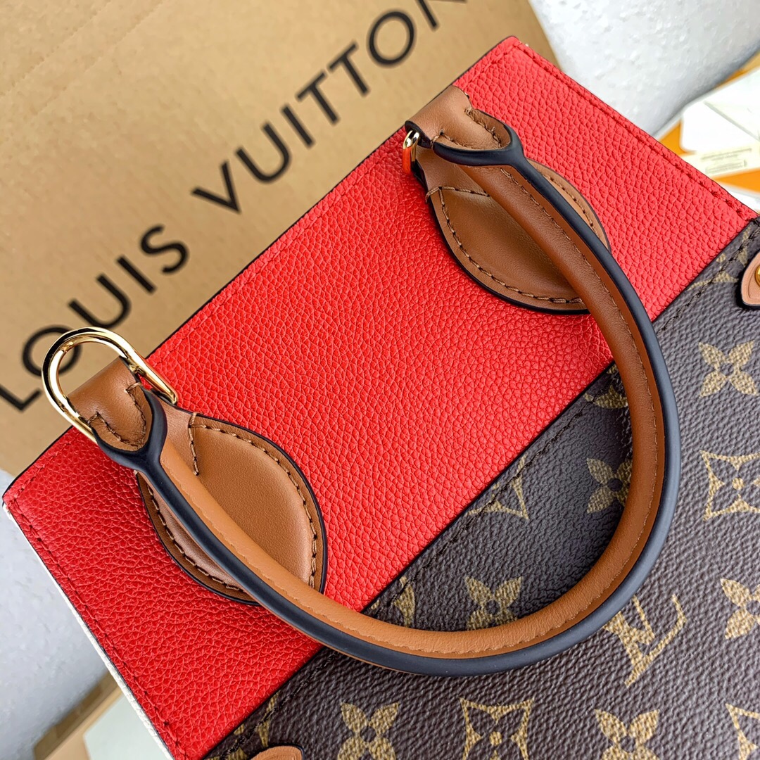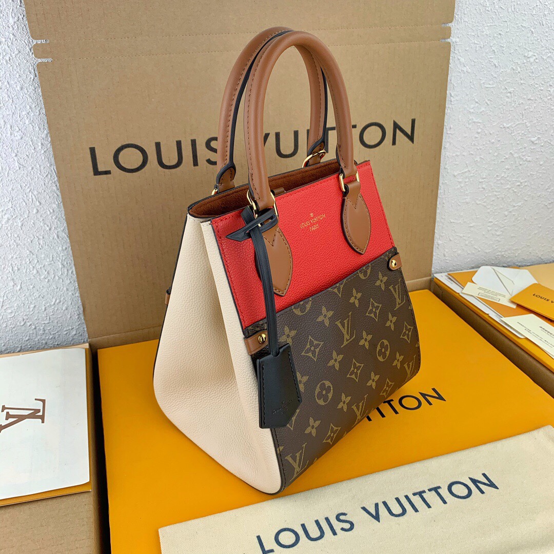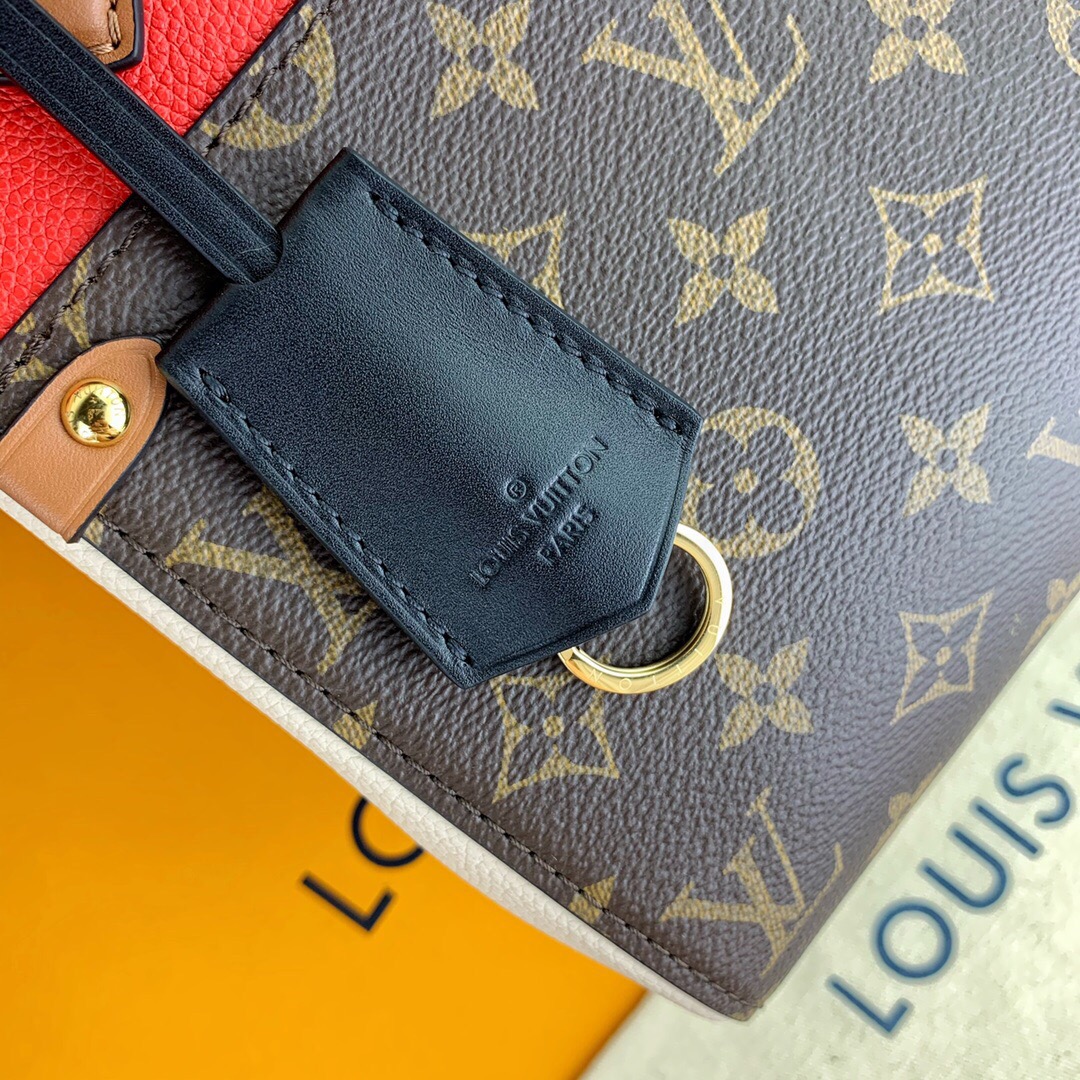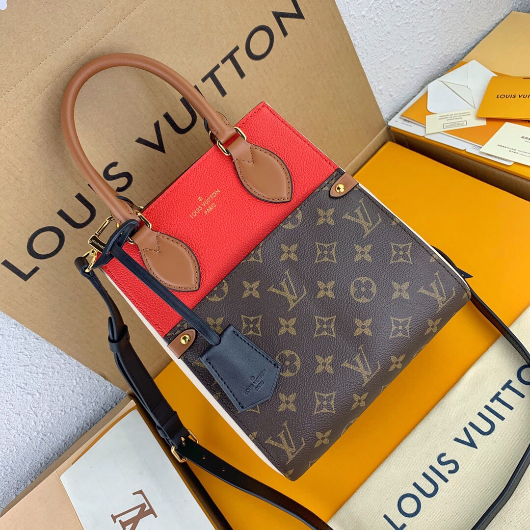 Lv Bag m45389 The new fold tote small handbag is made of monogram canvas and dark dyed calf leather, with toron handle, leather handle ring and rivet. Folding leather lining, wide leather shoulder strap for shoulder or slung.