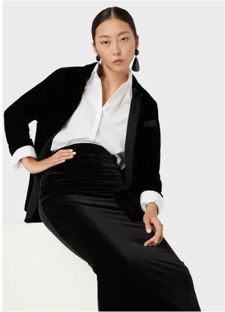 An iconic fabric from the Armani collections, velvet is the protagonist of not only evening looks but is also suitable for daywear. Its lush, lustrous, mysterious look completes any outfit — even casual styles — with charm and exclusivity. The matching satin details create elegant highlights all over the shirt.