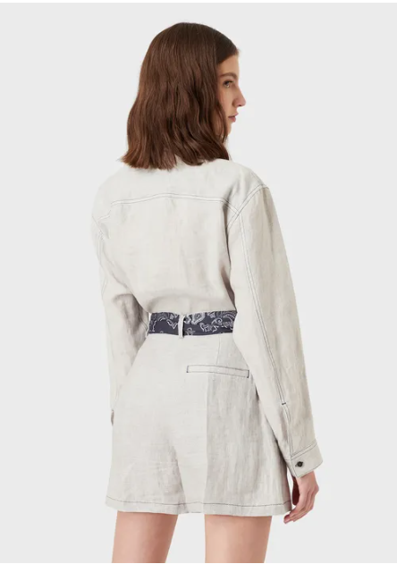 Items from the Denim Capsule Collection are defined by a fresh, youthful allure, thanks to exclusive natural linen, along with decorative details inspired by traditional bandana patterns. This shirt’s clean lines are harmoniously enhanced by extremely lightweight, fresh, high-quality linen chambray, making it one of the season’s must-haves. Contrasting topstitching.