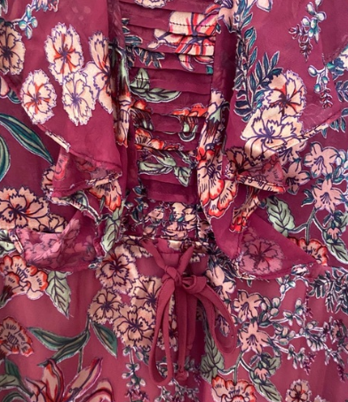 For Love & Lemons Flora Berry Ruffle Mini Dress Size S Pit to pit: 18” Waist : 15.5” (across) Length: 32” Measurements are approximate and may differ slightly- Your style will be in full bloom in the Flora Drawstring Mini Dress. A-line silhouette. Floral design on a silk-blend fabrication. V-neckline. Long sleeves with adjustable button cuffs. Ruffle panels throughout. Drawstring ties at waist. Lined. Mesh panels at sides of hem. Curved hemline.