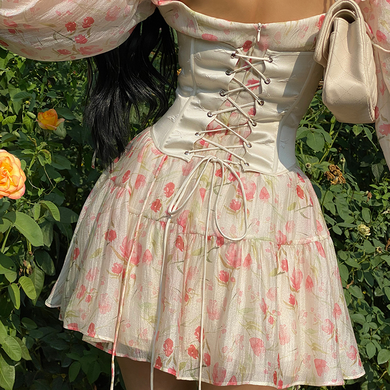 Applicable age: adult size: XS S M L design: color style: commuter: retro collar: square collar waist: high waist garment front: pullover color classification: fog pink at the end of May fog pink at the beginning of June Sleeve type: Bubble sleeve combination form: single item No. : YT21X117 Skirt type: Big swing year season: Spring 2022 Sleeve length: Long sleeve skirt length: short skirt popular elements/technology: agaric lace print style: Princess skirt profile: A Profile composition: polyester fiber