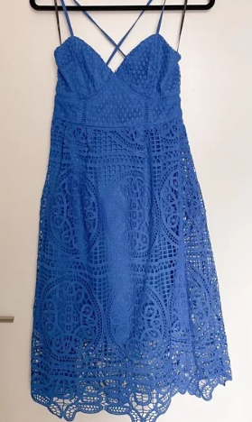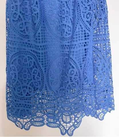 NWOT Lulus Royal Blue Midi Dress with Strappy Back Lulus Exclusive! The Lulus Real Life Dream Cobalt Blue Lace Midi Dress is a dream come true! Elegant crochet lace shapes, this stunning dress with a bustier style bodice (with seamed cups), set-in waist, and flaring midi skirt with sheer hem. Skinny straps meet with a lace-up back atop an exposed silver zipper/clasp. *Fully Lined. *100% Polyester *Style 564772