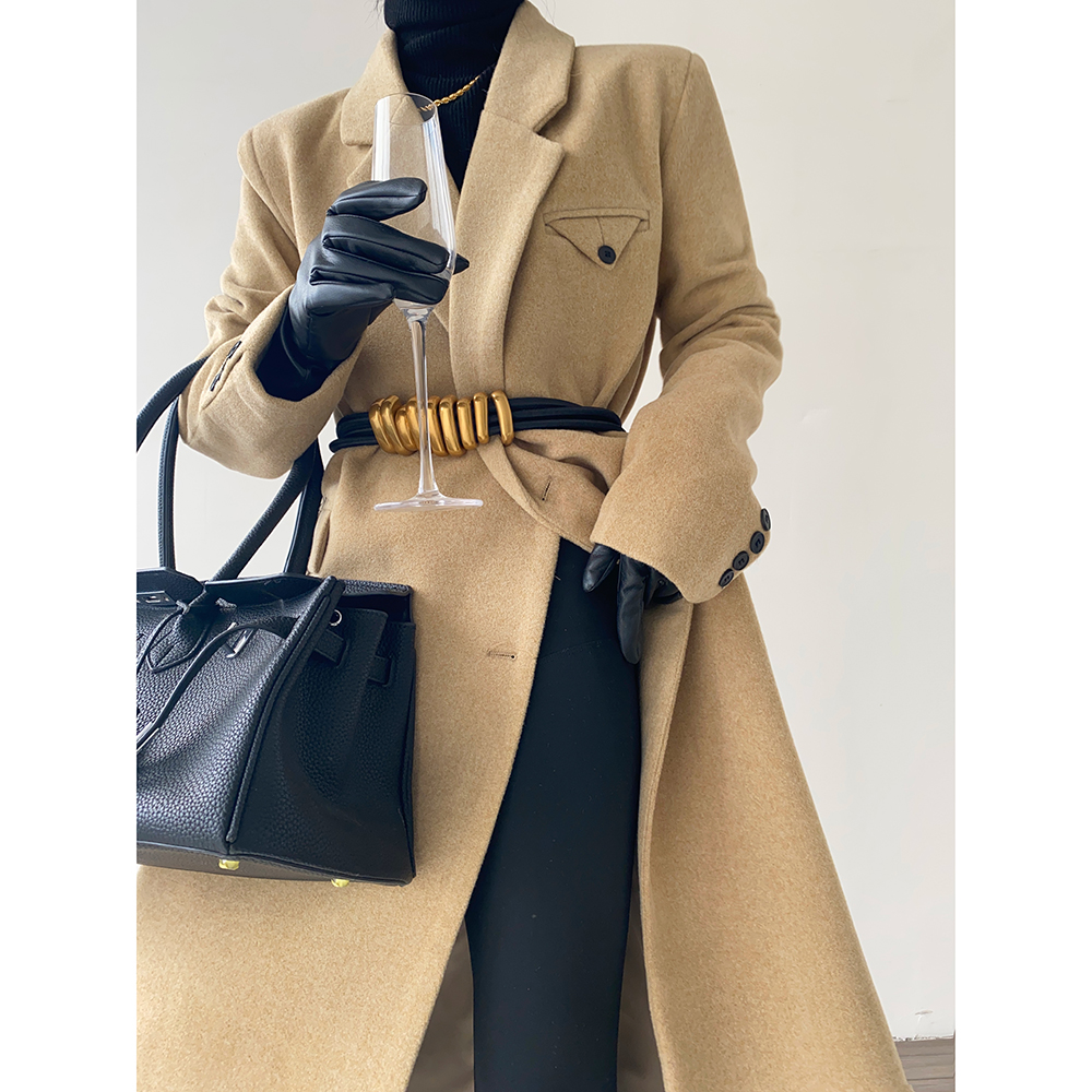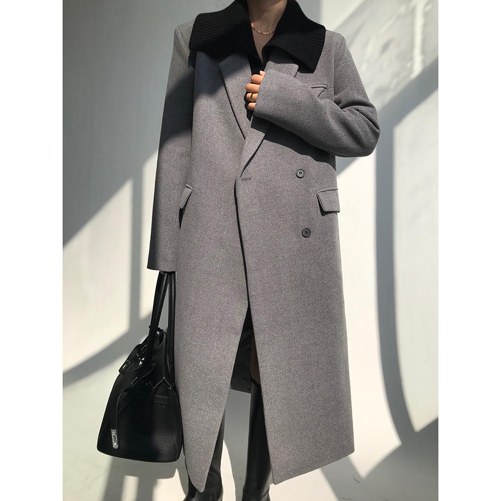 ACUP winter over-the-knee long loose woolen coat women's 2022 new Hong Kong flavor retro high-end atmospheric woolen coat