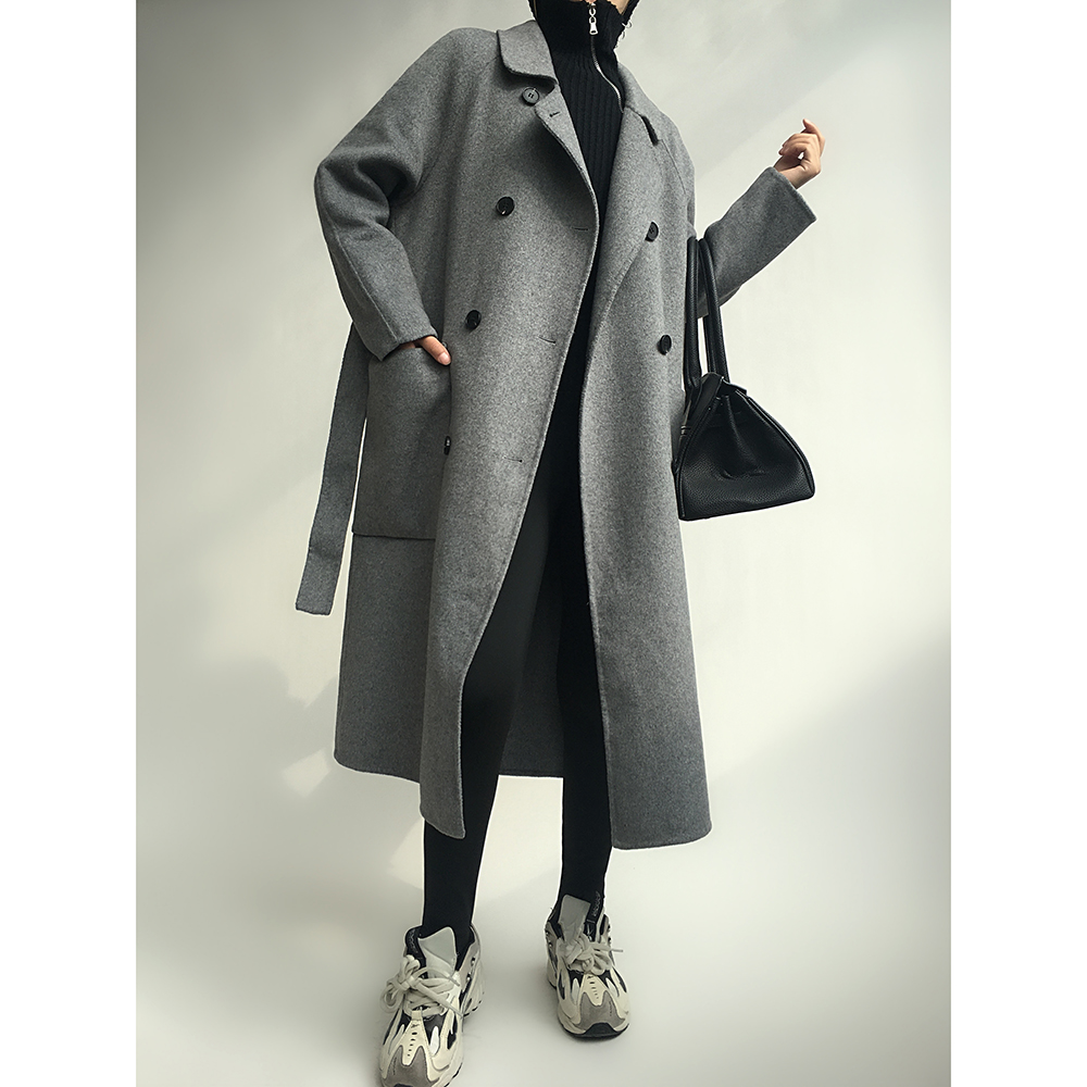 ACUP double-sided woolen cashmere coat women's mid-length 2022 winter new gray double-breasted suit woolen coat