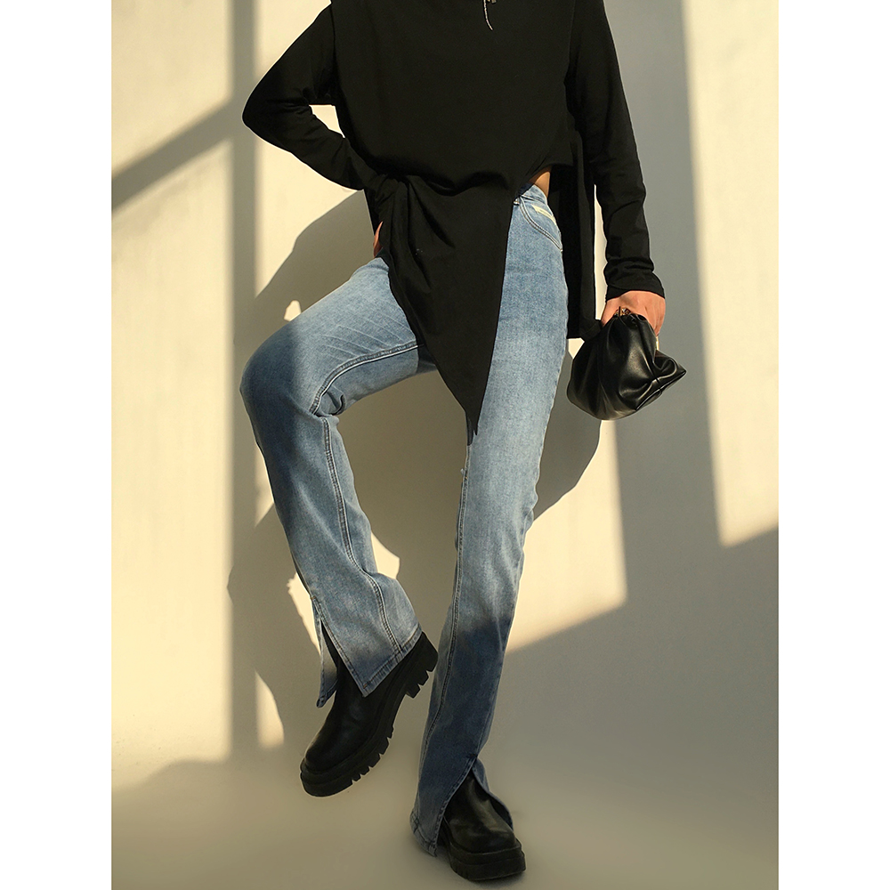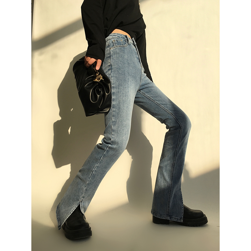ACUP split jeans women's 2022 spring new European and American style light-colored cigarette pants are thin and small-footed jeans