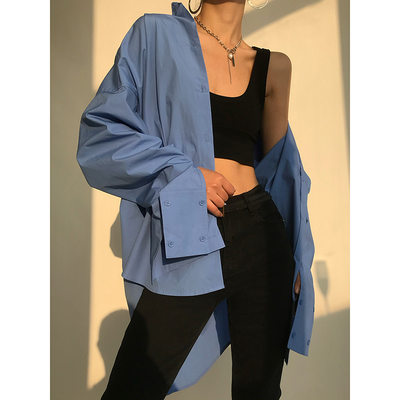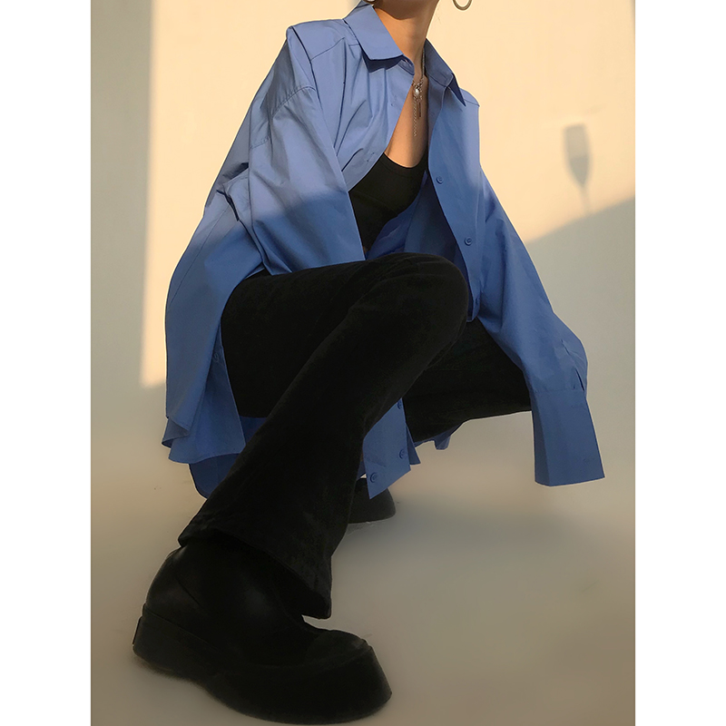 ACUP design sense niche shirt women's 2022 spring BF wind oversize blue loose high-end shirt women's tide