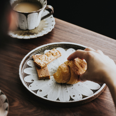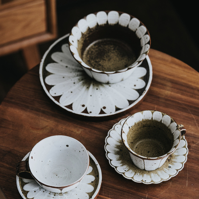 Material: pottery pattern: other/other style: Japanese-style shape: round color category: single round cup with brush flowers (only cup with brush flowers, small plate with brush flowers, large plate with brush flowers, small plate with brush flowers, single flared cup with brush flowers) (only cup with brush flowers, three-eye coffee spoon, three-eye spoon holder, main picture source: number of independent real pictures taken: 1 plate type: flat tea tableware technology: underglaze color size: 8 inches, manual: yes