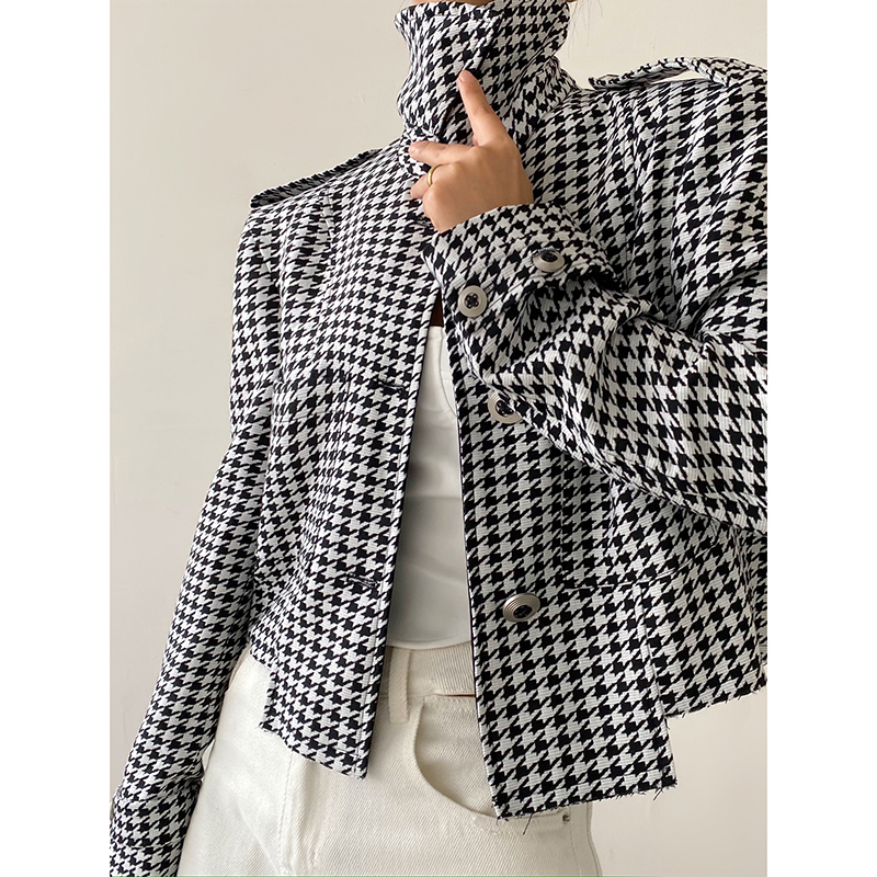 ACUP houndstooth jacket women's 2022 autumn new European and American style high-end leather short fried street suit jacket