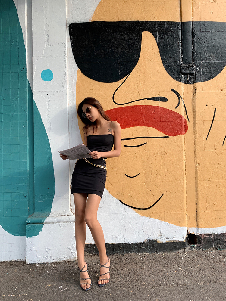 Pattern: Design and color Style: Street collar type: One-line collar waist type: high waist Color classification: white black chocolate color beige combination form: single skirt Type: one-step skirt Summer sleeve length: sleeveless skirt length: MIDI length Style: sling profile: H Material composition: other 100%