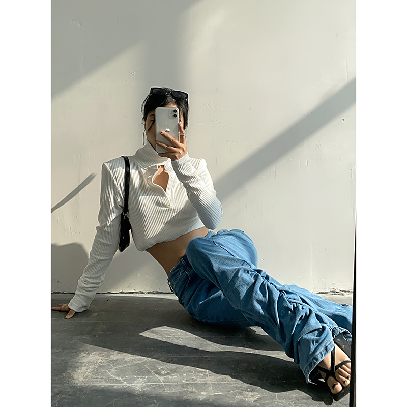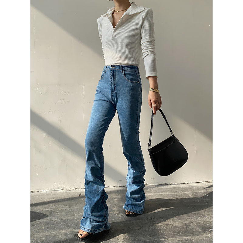 ACUP pleated trousers 2022 spring new European and American high-end hot girls niche jeans wide-leg trousers women