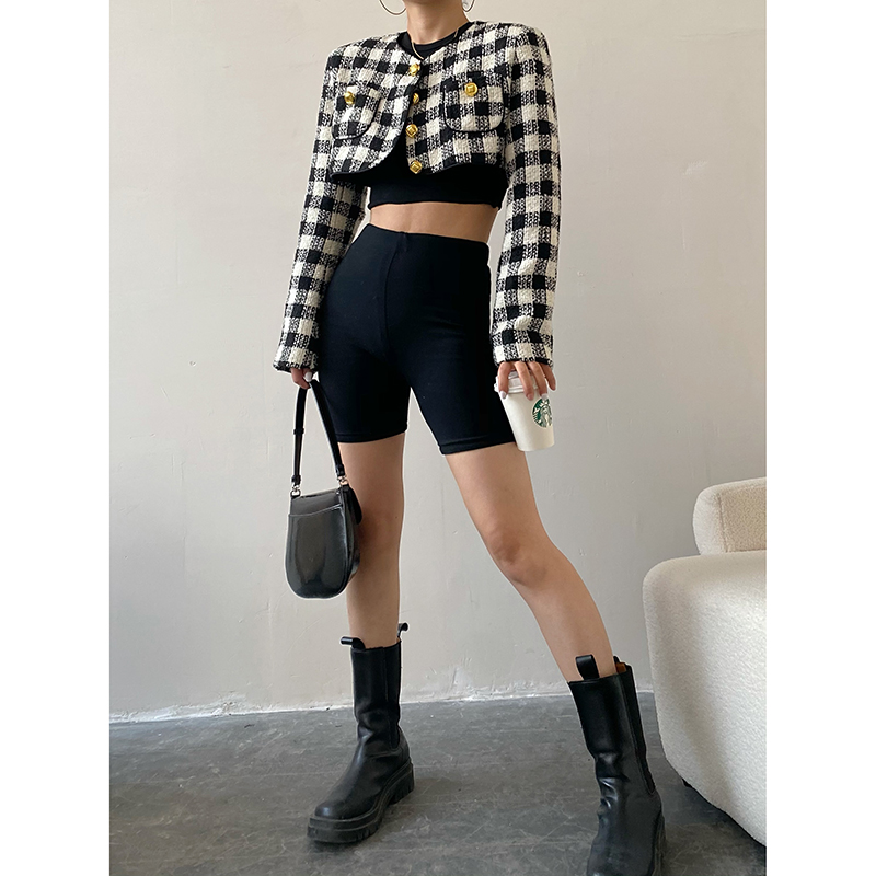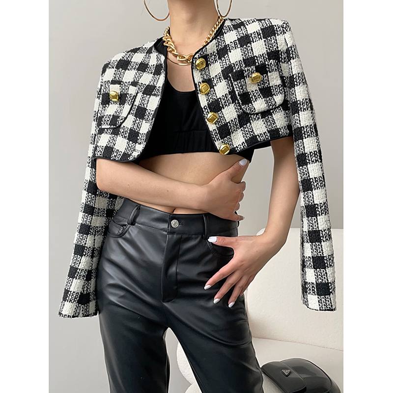 ACUP checkerboard short jacket 2022 spring new European and American hot girls black and white grid street niche fried street jacket women