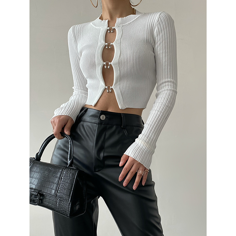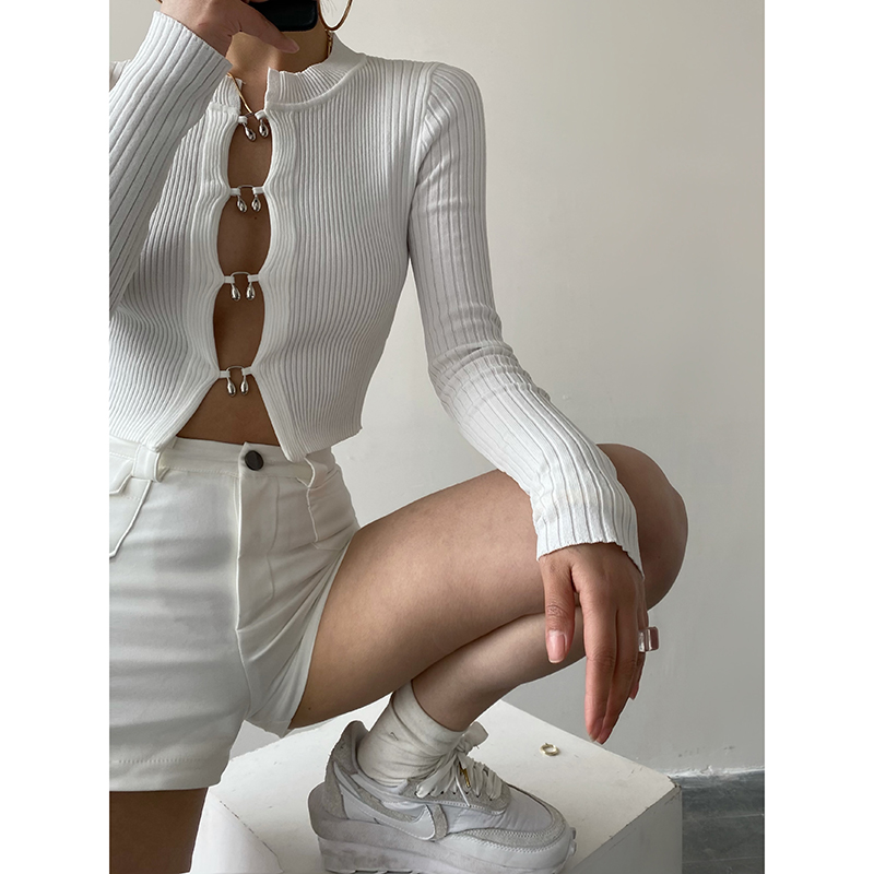 ACUP hot girl bottoming shirt 2022 spring new long-sleeved knitted hollow sexy European and American cropped navel top women's trendy women