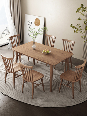 Nordic solid wood dining table modern small household rectangular Japanese dining table ash wood log table and chair combination