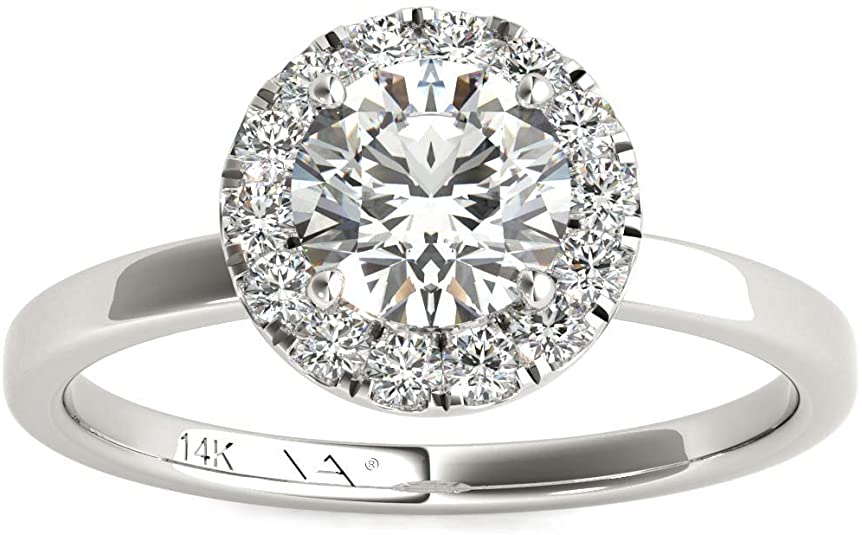 Vaarya 14K White Gold Natural Diamonds Halo Engagement Ring (1.00 Ctw AGS Certified GH/SI2-I1)