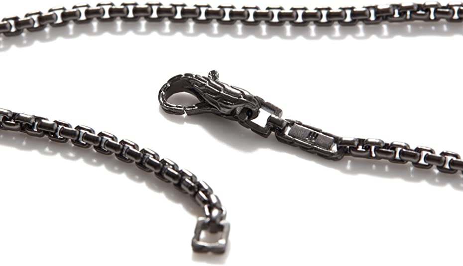 MEN's Classic Chain Silver 2.7mm Box Chain Necklace with Satin Matte Black Rhodium